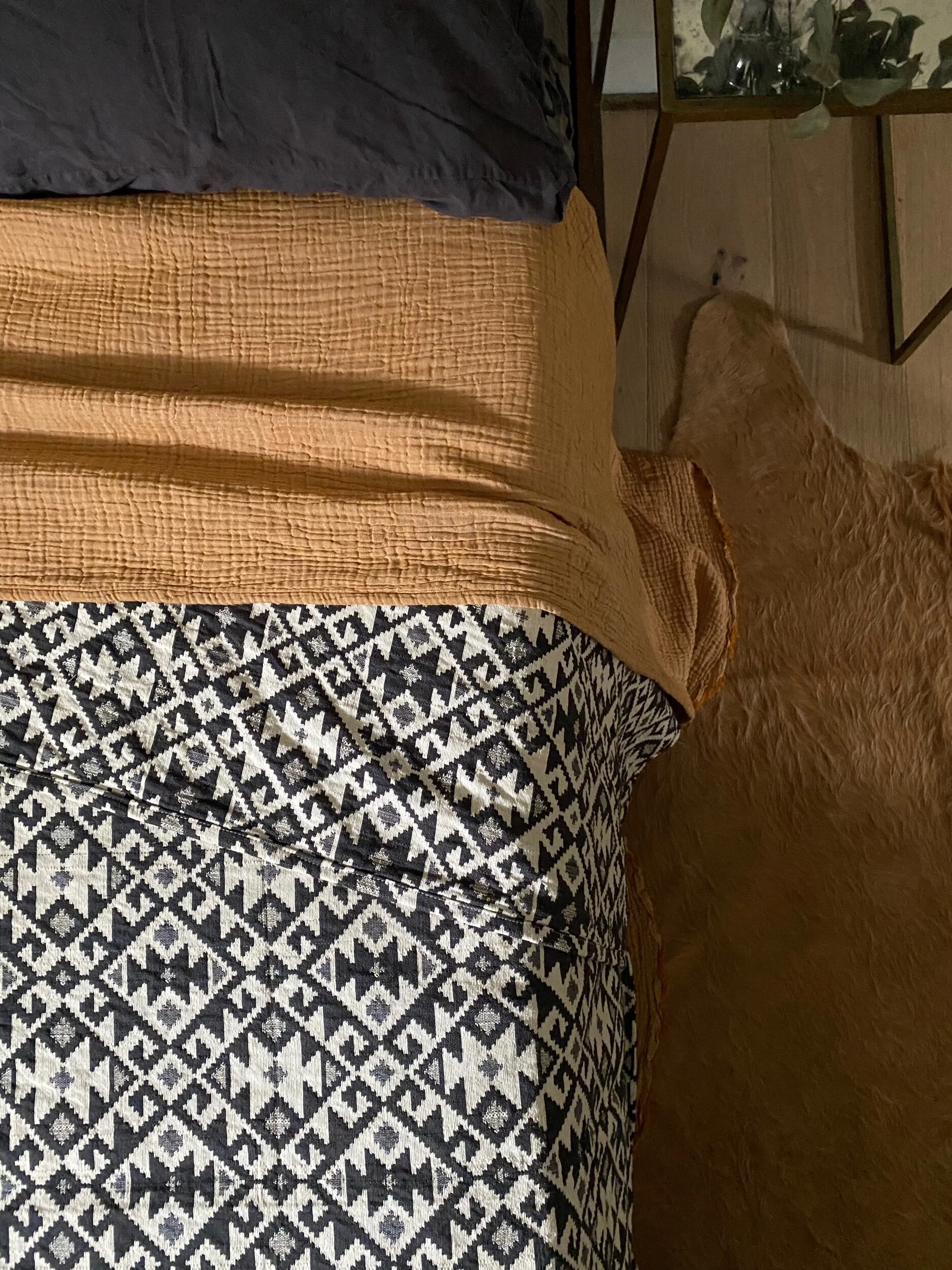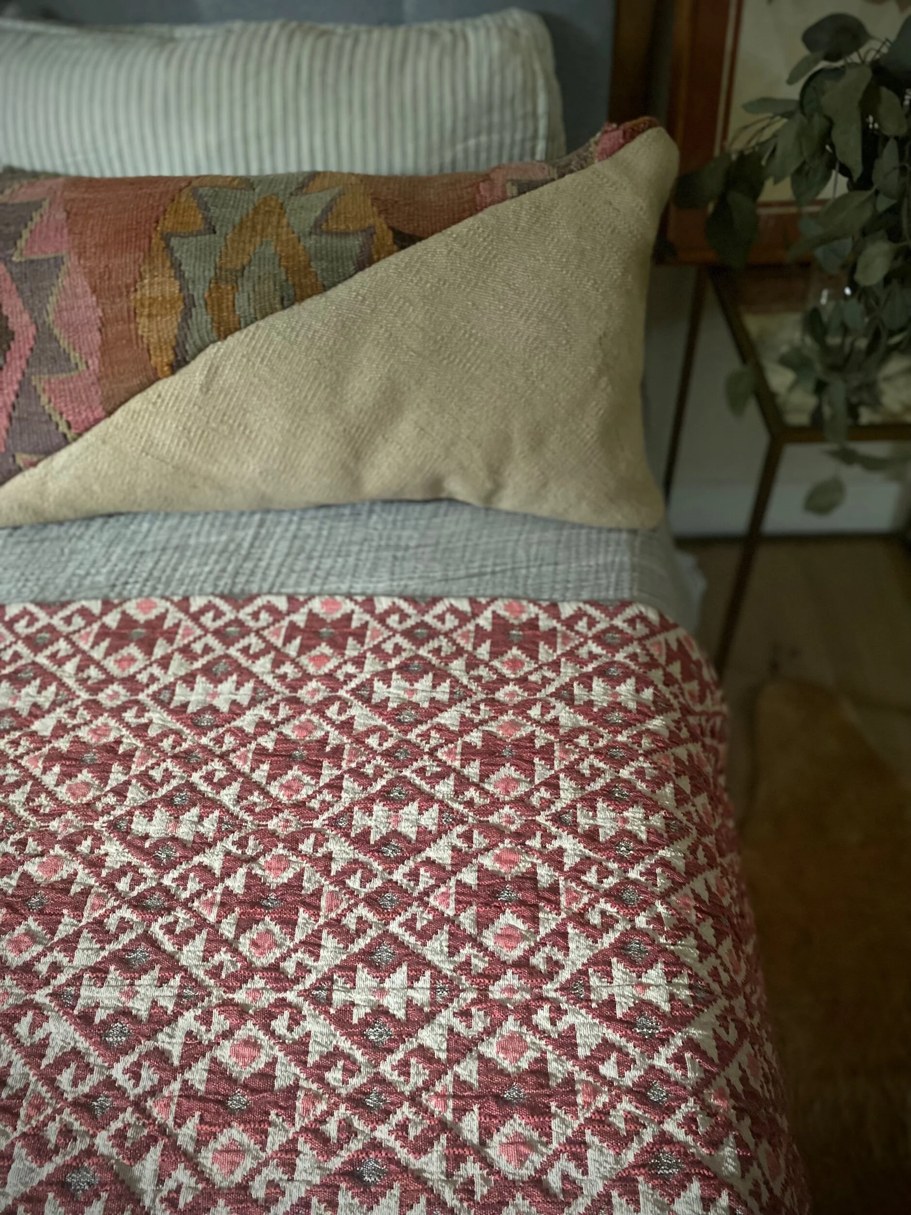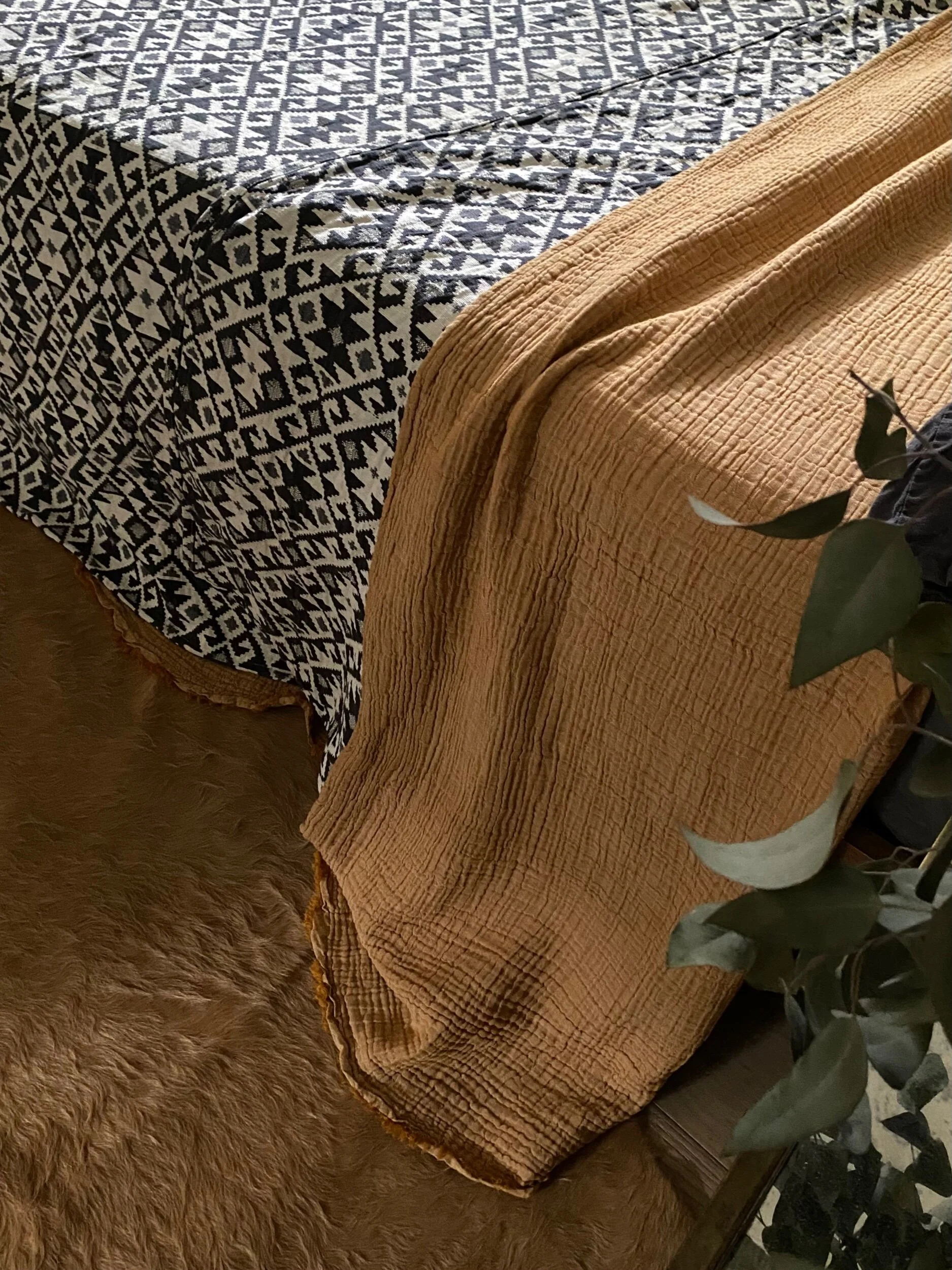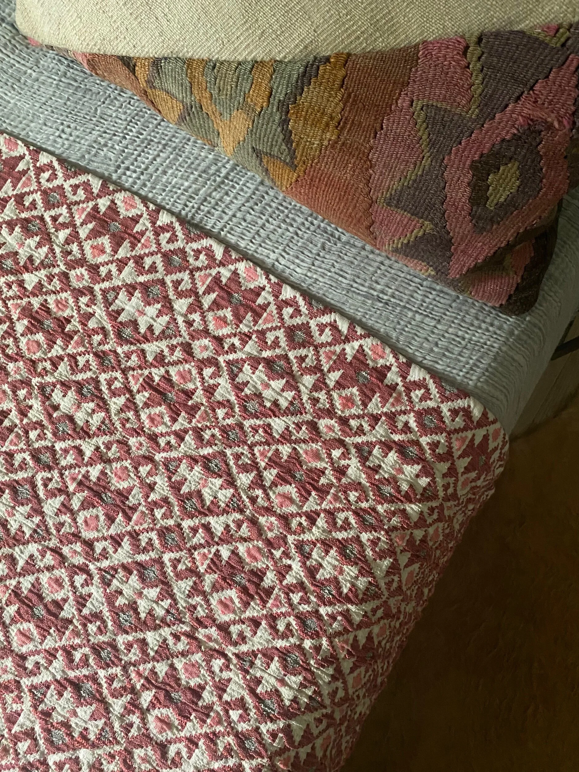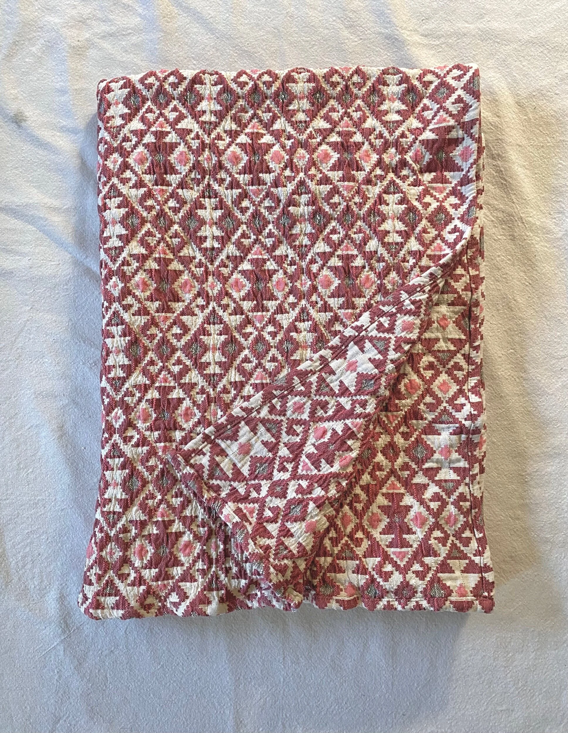 Our traditional vintage style cotton blankets are handwoven in Turkey on antique shuttle looms. These small-batch heritage quality blankets feature classic Ottoman designs and modern colors. Due to hands-on fabrication methods, each blanket of the same design may vary slightly in size and pattern.